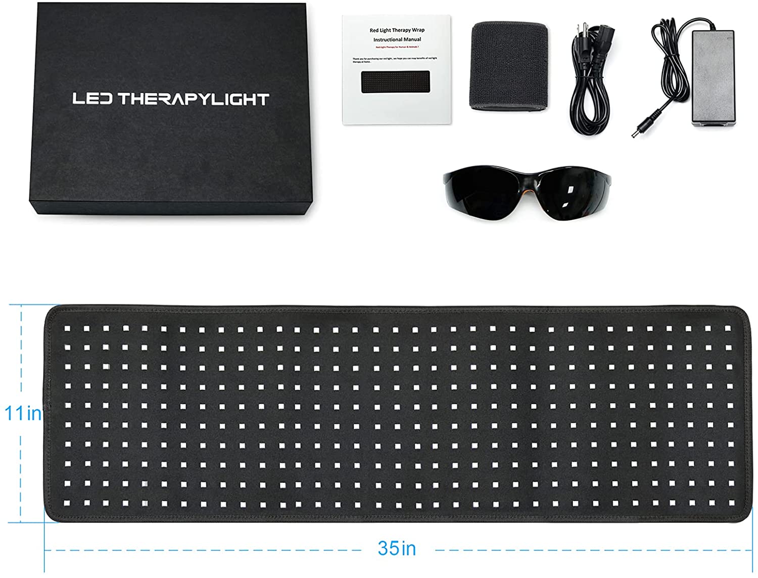 UTK Wearable Light Therapy Wrap 660nm LED Red Light and 850nm Near Infrared Light Belt for Body Pain Relief Large Pad with Auto Shut-Off Function(35”X11”)
